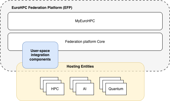 The EuroHPC Federation Platform (EFP) addresses this challenge by building on the strengths of these heterogeneous systems. It leverages the diverse computational and data analysis capabilities, advanced software environments, and high-performance storage solutions available across the Hosting Entities (HEs). The platform is designed to support an expanding range of workflows and enable innovative approaches to complex scientific and industrial challenges. By federating these resources, the EFP ensures that the distinctive advantages of each HE is fully leveraged, including energy efficiency, environmental sustainability, cost-effectiveness, adherence to high security standards, strong ties with specific scientific communities, and active stakeholder engagement.