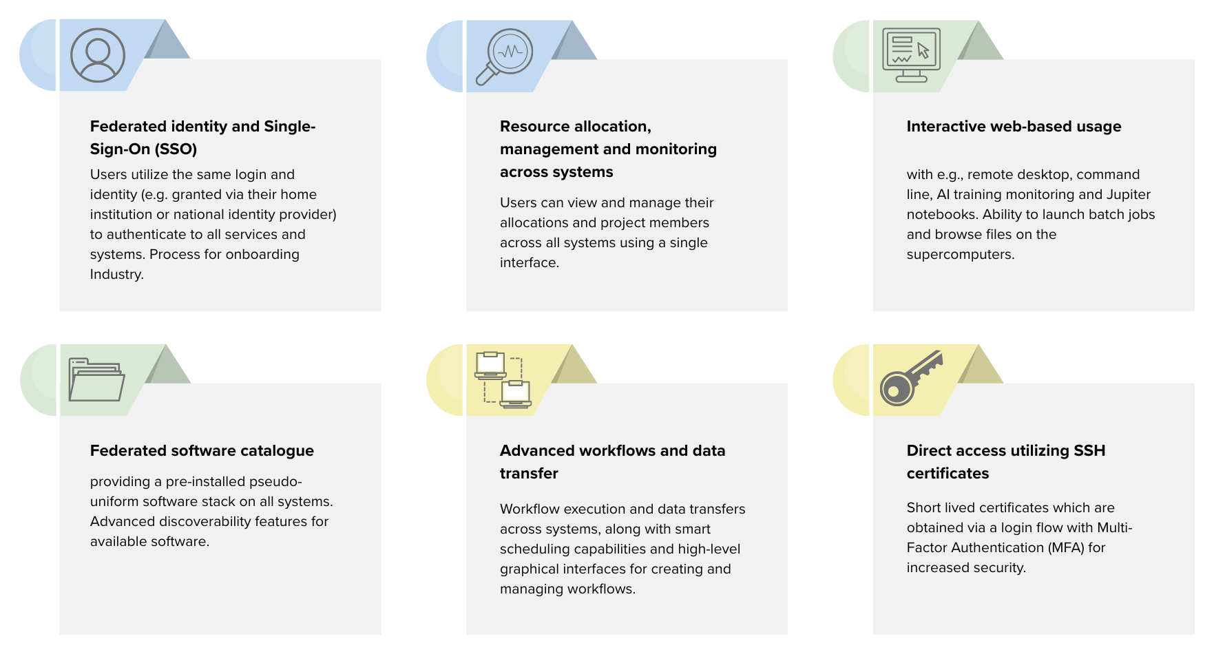 - Direct SSH access integrated with MyAccessID based SSO through SSH certificates;
