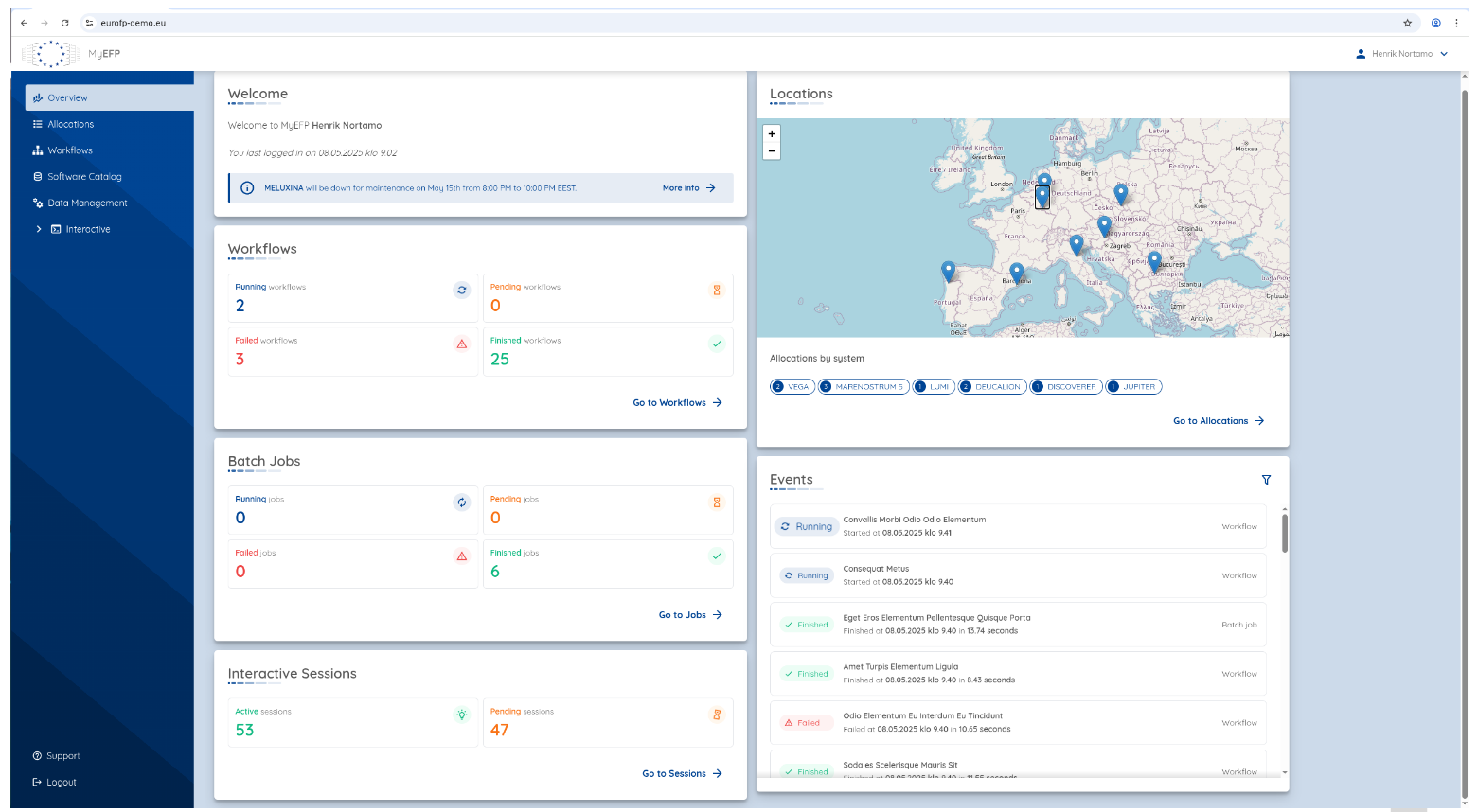 - MyEuroHPC web interface as central entry point to EuroHPC systems;